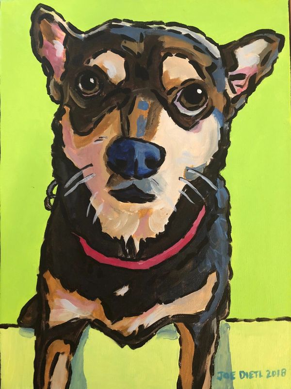 I will then paint your pet on a Gallery-wrapped canvas that has a 1 1/2' profile on the side. I will paint the sides black and apply a high gloss varnish over the top of the piece, protecting the painting while also really popping the colors.